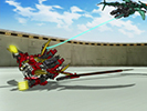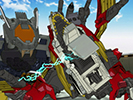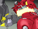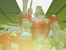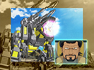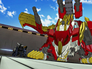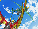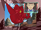 Rastani's Blade Liger has a lot of animation confusion in this battle. It loses its blade, but less than a minute later it reappears. There's also a few scenes where it looks like it's missing the face fins, which is odd because it didn't take any hits. They're actually pushed entirely inside of the head, and are 61.jpg">sticking out the back instead.