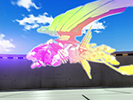 The anime-iteration of Liger Zero Phoenix is equipped with a rainbow-colored body-tight E-Shield.
