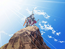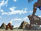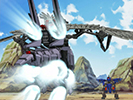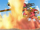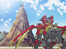RD practices for the fight in a Raynos to get used to the high G-forces of fighting against the Matrix Dragon. It's unclear where this Zoid came from or who it belongs to.