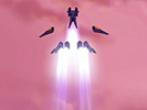 RD describes the Alpha Zoid as a Zoid that's all about justice, and is convinced that it wouldn't attack the Liger Zero in spite of their power difference. In the English Dub this used a generic silhouette referencing the Energy Liger. In the Japanese Version, this was changed to an early look at the Liger Zero Falcon. Funny enough, the generic silhouette fit the narrative better at the time (the assumption that the Energy Liger was the legendary Alpha Zoid.)