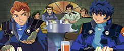 Haldo used to work with Maskman 10 years ago, and mentions that he's the only veteran still with Mach Storm. He doesn't recognize any of the others.