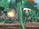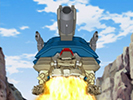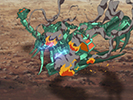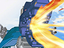 The Boldguard uses a move called the "Crazy Spike Attack" where it jumps into the air using boosters on its underbelly and spins rapidly into the opponent.