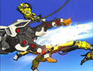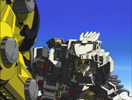 Viewers are introduced right off the bat to a new kind of combat: Sanctioned battles in which pilots and Zoids compete for competition and prize money. A lone scrap dealer makes his living on raiding the fields after each battle, picking up and selling scrap parts. He makes a big mistake when he sneaks into a Zoid base and finds himself hostage to an out of control Zoid!