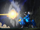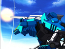 The Long Range Rifle installed to the back acts as the primary weapon of the Command Wolf. It packs quite a punch, and is usually enough to jar an enemy Zoid or send them veering off course.