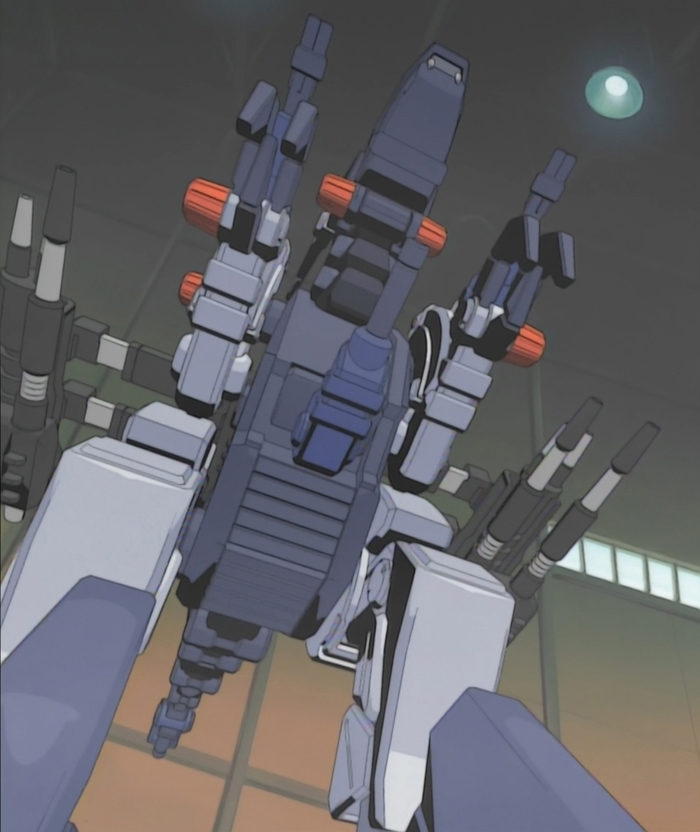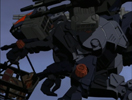 This Gun Sniper, a reused model from Chaotic Century of the Phantom's Gun Sniper, was seen in the shop where Rinon purchased her Gun Sniper RS in Romeo City. The legs are detached from the body on an automatic leveling rail, which keeps the Gun Sniper steady when on unsteady terrain, such as on a boat.