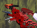 Rinon's Gun Sniper has so many guns, and she rarely uses them individually, so we'll be lumping them into this one category. The Weasel Unit Total Assault involves firing off just about every weapon the Gun Sniper has. The advanced targeting system allows her Zoid to target each individual enemy, if she chooses to, allowing for precision fire to down all targets without harming others. Of course, she usually just shoots in their general direction. When the attack is about to fire, the Gun Sniper's antennas flip upwards on the head.