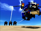 Jager's Large Ion Booster gives the Zoid a massive increase in speed. Enough to keep up with even the lighter-weight Lightning Saix. When in use, the stabilizers extend from the sides of the boosters and the boosters themselves open up into a fan. Air streams off the sides and the engine intakes at the front of the boosters glow red hot. The set can be swiveled around to face sideways, allowing the Jager to carry out high-speed maneuvers to dodge around enemy attacks, even midair.