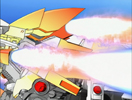 The Panzer has a huge variety of missile launchers on it. However, in the context of the show, they're rather simplified and always fired off in one massive boom called the Burning Big Bang. It's the Panzer's final move, but because of the immense amount of heat generated, the Panzer is forced to eject its armor immediately following the attack. Use of this attack brings up monitors around the cockpit, with locks to target each individual opponent.