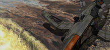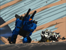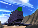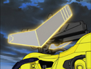 This cannon is located in the nose, below the 720mm electron cannon. It launches a massive ball that moves of its own volition and crashes head long into enemy Zoids. A hit will take out any large unit on the battlefield, and even if it comes to a complete stop it can begin rolling again. The first image above shows the size of this ball compared to a large scale Zoid (Liger Zero.) |