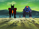 - Krueger was originally intended to pilot the Gojulas. However, it's strongly inferred that he may have wanted Irvine to pilot it instead. Neither of them got the chance, as Rob Hermann arrived (having flown dangerously over enemy lines against anyone's better judgement). He fully intended, and in the end did pilot the Gojulas, disregarding any respect for Krueger by claiming he was too old to do so and finding Irvine's plea to pilot it to be laughable. Ironically, he topples the Gojulas the second it steps off the platform.