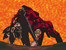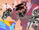 In this episode, Raven's Saber Tiger is killed after lunging part way through the Energy Shield as it activates. The Zoid continues to force its way through, resulting in the armor ripping up from its body until finally, its head is destroyed. This serves as an example of just how dangerous E-Shields can be if the target gets caught at the wrong time or, in this case, has no self preservation.