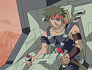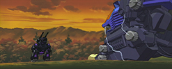 As they stop the rest, the group stumbles upon Rudolph and hear his story about being lost in the woods. He insists that he's with his "parents" (Rosso and Viola), but the group offers to let him stay for a meal. That evening, Raven shows up in an entirely new Zoid. A terrifying machine equipped with a charged particle cannon. Our heroes have no choice but to run for it, while Rosso and Viola try to hold off the terrifying Geno Saurer.