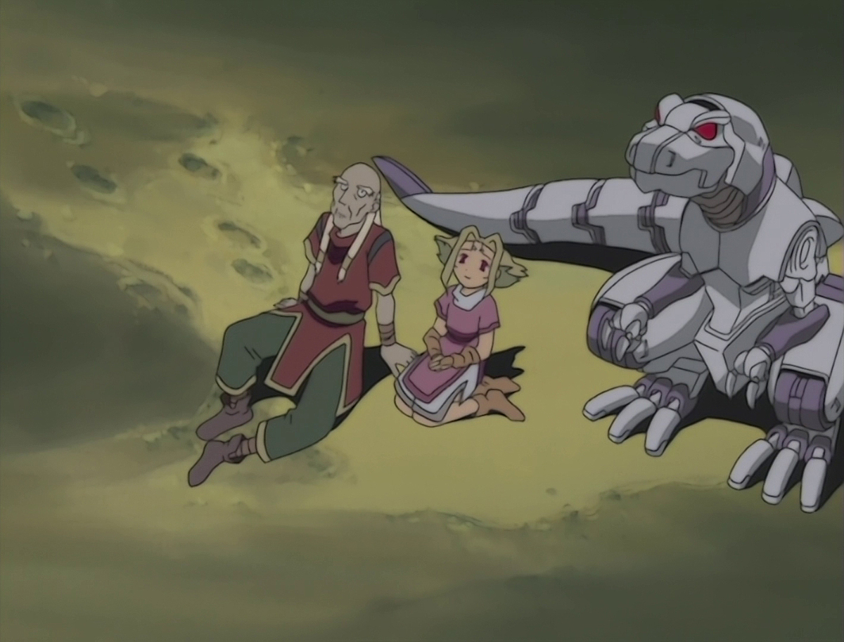 After the Shield Liger's evolution into the Blade Liger, Fine begins to see mysterious memories from her past. Dr. D, recognizing this, assesses that she may be an Ancient Zoidian, a member of a lost civilization that we still know little about. She isn't given much time to explore such thoughts before the group is attacked by the Crossbow Brothers, bandits on the hunt for an Organoid.