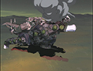 The Cerberus uses Micro-Electronic Stealth Chips. An electrical imaging device that transmits pictures, and in this case took advantage of the surrounding wind mills in the area. By scattering the chips over a wide area in large quantities, they could be used to project illusions, such as the massive Cerberus. Though its electrical impulses would still show up, the Zoid wouldn't actually be a solid mass. Instead, the Cerberus used a Saber Tiger with a large tower on its back to simulate the Cerberus firing from its mouth. The bulk of the Cerberus' body, being so much taller than other Zoids would trick pilots into firing in the wrong direction, ignorant of the much smaller Zoid hiding in the illusion.