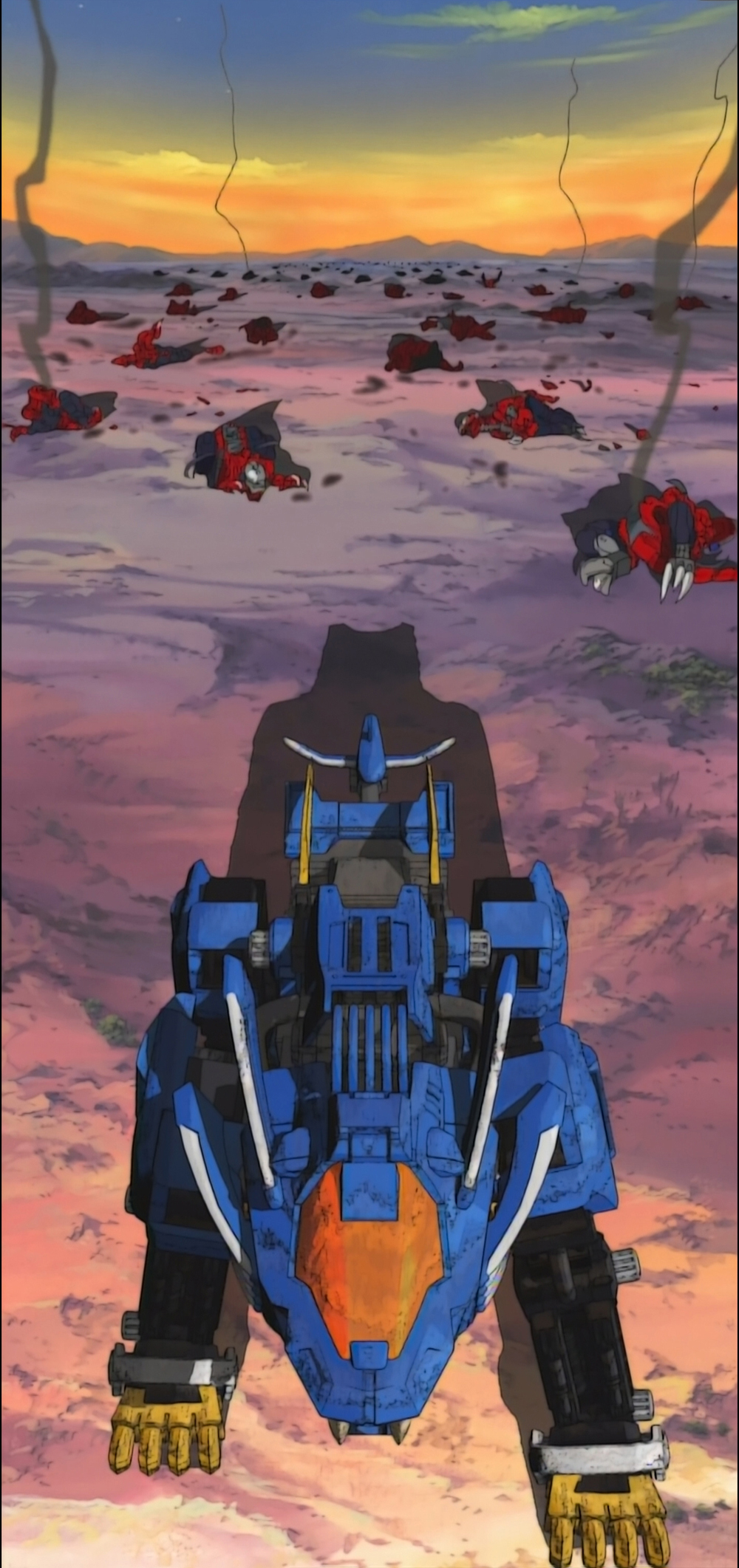 The Death Stinger targeted a number of places along its rampage, including a prison holding many of the fugitives Bang had dealt with throughout his journey. The prison's Rev Raptors had no chance against the sea scorpion, and neither did any of the Zoids that the prisoners stole to fight back.