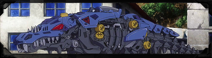 The Gabrigator is a semi-aquatic amphibious Zoid, able to fight both on land and on the sea. In the show they're almost exclusively depicted as part of the Imperial Army, with Z-O Visors covering the standard eyes. The one pictured above appeared during Earth's Zoid Crisis. Gabrigators typically have their cockpit located on the middle of the back.