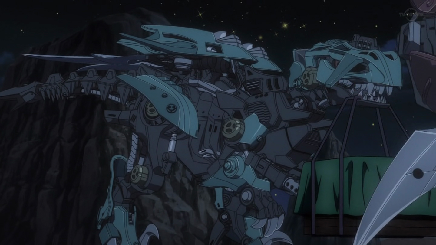 The Zoids belonging to this group of scrap dealers both had Power Rifles. In the Gilraptor's case, they were installed to the tops of the arms, which would give decent control in terms of where they can aim.