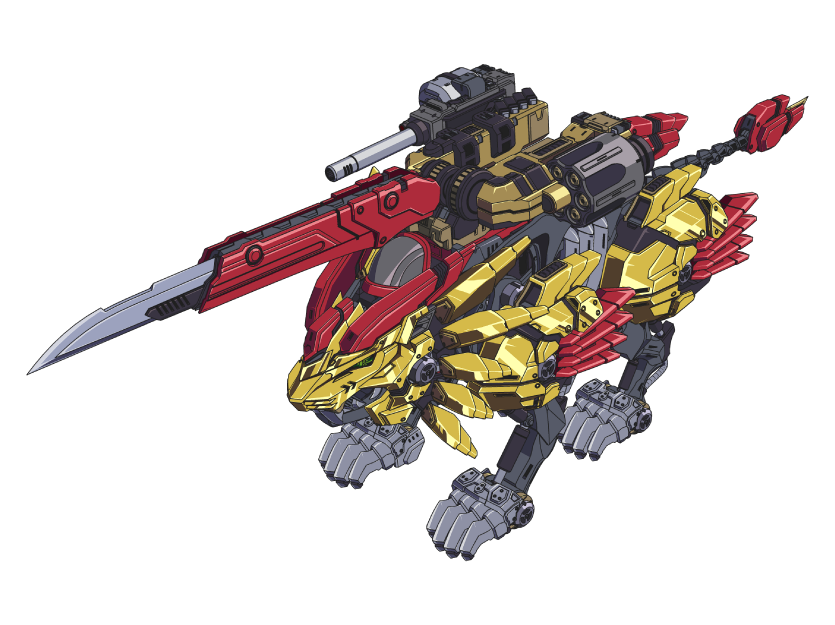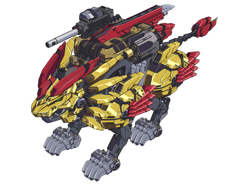 The Beast Liger has been reinforced, and features a Rising Armor that's equipped with golden armor, an Anti-Zoid Mane Shot and Anti-Zoid Mane Blade.