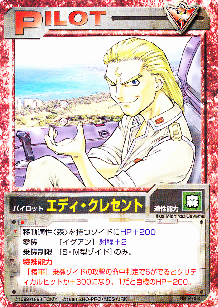 * Special Abilities: Gamble The Zoid he's piloting gets a +300 critical hit bonus if a 6 is rolled on attack accuracy; -200 HP to own Zoid if the roll is a 1.
