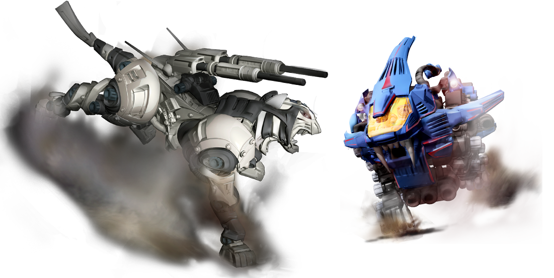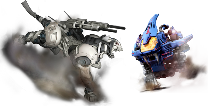Zoids: Material Hunters is a side-scrolling action game where you must race across fields infested with enemies. Defeat them to obtain loot after the battle, materials which you will use to build new evolutions of each Zoid!