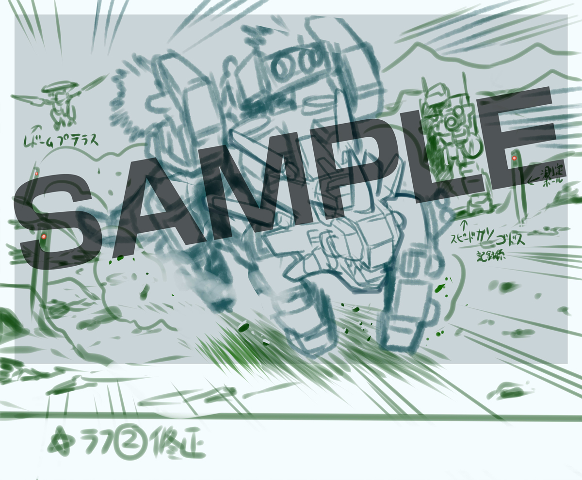 - The Green Horn AB had several concepts for its box art. The first would've depicted it actively using the experimental particle shields. The second would've shown off the fact that in spite of all of its equipment, this Zoid is actually only slightly heavier than the Shield Liger! And would've had it fleeing across a suspension bridge. The third and final example reimagines its escape scene, but while it technically didn't have the ABs in this scene, they elected to keep them to match the Kotobukiya interpretation.