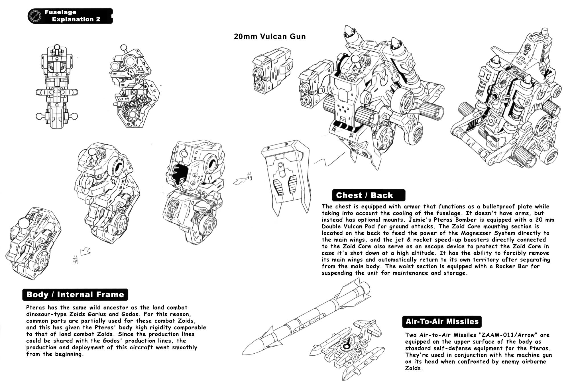 "Besides, Jamie! The Pteras may be an air combat Zoid, but its legs use the same tough frame as the Godos, and have been adjusted for more flexible movement..."