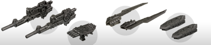 One of the most requested things of Zoids Wild was the ability to customize our Zoids, and it seems TakaraTomy has listened! Aside from the ZW30 weapons set we've seen leaks of, a large number of weapons were previewed at the Tokyo Toy Show. Not only do these weapons attach to the numerous pegs on Wild kits, but they're also designed with pegs on the weapons themselves. This means you can combine the weapons in a variety of ways, creating your own unique combinations. These weapons are designed to fit the common pegs and socks of Wild Kits.
