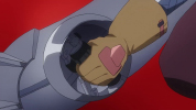 In an interesting turn of events it seems as if pilots of the Empire, at least, link up to their Zoids to activate the Machine Blast. Not only do we see a suit diagram, but two large screws on the back of Luc's suit appearing to bolt in a cable that likely links to the Zoid. Upon the activation of the Machine Blast, the visor that covers the Zoid's natural eyes generates a glitchy graphic and the ability activates.