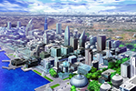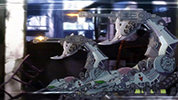 As we enter the trailer we see a lot of beautiful background art. Some of the shots stand out as a prestine urban environment with carefully groomed grass, well kept streets, and a skyline made of glass. Yet, as you look to the background of Image 1, we see a devastated ruin environment. The city facing away from it. This ruin zone seems to be heavily policed by Zoids of the Empire.