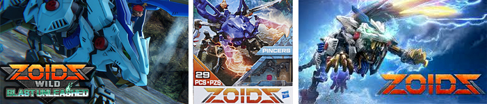 It's also worth noting that most of these localization trailers included branding by Hasbro. The logo seen for the game is also the same as the original Hasbro announcement at Mipcon (right). That initial release showed a promo image of the Wild Liger and our first look at the new logo, and the same style of artwork was seen later in the leaked box arts that were circulating the web late last year (center). All in all, it's an exciting time for western Zoids fans! Here's hoping we hear some info on the kits or western dub later.