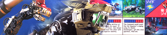 We've already covered the Zoids of the Republic, but now you can read all about the Empire Zoids that featured in Volume 2 of the Official Fan Books! This also includes some Zoids that didn't feature, like the Empire's Command Wolf, and some information on the hierarchy of the Empire troops. Also fixed the broken links on the main OFB page. The next sections won't take long to address, since they're relatively short.