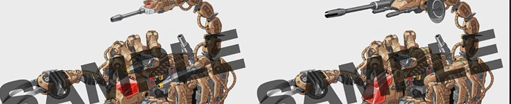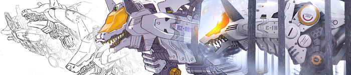 While Heavy Arms gets some coverage in the same articles as the standard wolf, it also got some CG teaser images earlier on. Once the kit was fully announced, Tanimeso, an artist who worked on the Zoids web comics, also posted some of the old Heavy Arms art!