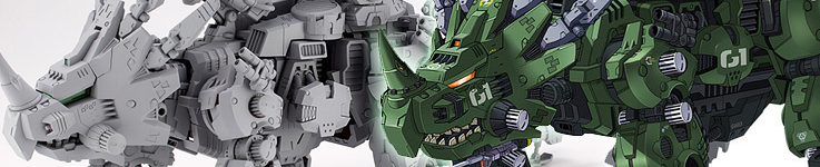 In addition, Kotobukiya posted a LABO Article going over this kit. For those who aren't aware, the Attack Boosters are based on the Delusional War Record (web comic) appearance, where the Horn was equipped with Attack Boosters as an equipment test. "Wouldn't boosters be useless on a Horn?" Not if you need a durable Zoid to make sure they don't blow up first! The blog points out the Anti-Charged Particle Shield Generators that replace the frill pieces, the additional tail parts, the new composite sensor on the back, and the variety of connection points that the Attack Boosters use.