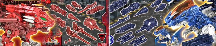 Two new weapon sets have been announced for the Zoids Wild series! The ZW49 Missile + Laser Combat Unit and the ZW50 Cannon + Laser Combat Unit! These include brand new weapons that we've seen in the short monthly anime episodes of Zoids Wild Senki. They feature almost the same weapons between them in different colors. They are scheduled to release on December 12th for 1000 Yen.