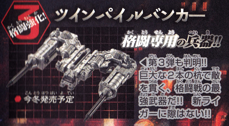 Burning Liger and its associated weapon and set are now released, but in the mean time, it has gotten a lot of video updates! Including TakaraTomy Toys posting a video of the Impact Gatling attached to the shoulder, which still spins! They also have an information video over on Youtube. The commercial shows off the upcoming ZW53 Ignition Boosters and the silhouette of the upcoming Twin Pile Bunker