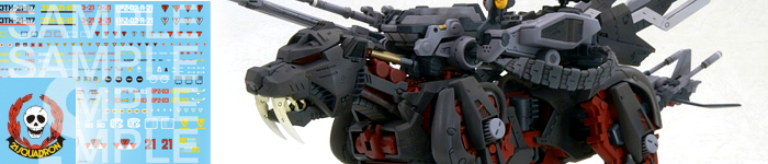 To set this Zoid apart, the Dibison is using the old registration number, RBOZ-006 instead of RZ-031. The decal set is the same as the Saber Tiger, with the exception of the Republican logos and registration numbers (which include both RBOZ and RZ designations.) You can read all about it in Kotobukiya's LABO article.