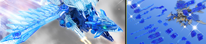 We have two new images from Zoids Wild: Battle Card Hunter! The Drei Panther Blood and Sonic Bird Garnet. It seems that this time around, some of the original Zoids are getting custom decals, even if they didn't have them before. It adds character!