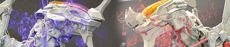 We've got an official page for the second Hunter Wolf MPD which more or less rehashes the lore of the first, but includes lots of gorgeous photos of this Zoid. Looks like it'll have blue eyes! The original unit had yellow-green eyes.