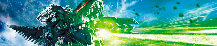 The Omega Rex has shown up on the TakaraTomy Mall, scheduled for a March 28th release for 7,700 yen (tax included)! On a fun note it seems that the Rex's particle cannon, which we've known about for a while, uses a stunning green color. It'll be interesting to see how it is used in the show, whenever it shows up. CoroCoro also has a page showing off a new diorama style image, citing the particle cannon as a weapon that can blow up an entire city in just one blast.