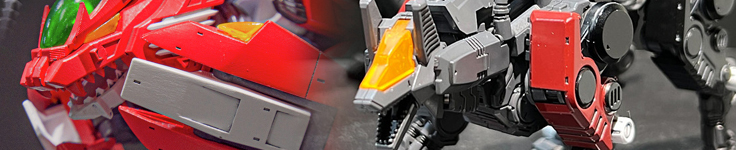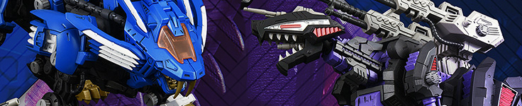 Realize Model series, a series of highly poseable 1/100 scale model kits with a huge potential lineup for Zoids. Unlike the Adamas Machina brand, this one seems focused on the Zoids series. Two painted samples (Blade Liger, Geno Saurer), three prototypes (Command Wolf, Helcat, Molga), and
