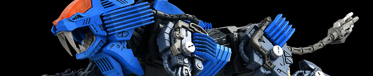 The first promo image of the RMZ Saber Tiger Raven Spec. brings with it the announcement that pre-orders are starting in November. Even more interesting, however, is that it includes broken armor pieces for the face! In the recently-broadcasted stream we got to see that it had peeled claws, but it's awesome to know they're going the fully distance and including the damaged maw of this hateful Zoid. It also has a display at the event.