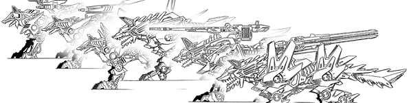 The last time we updated (7... months... ago- Ahem.) I'd started a project for the Smack Zoids! B-Part series. These were concepts published in DHM about various stages of Zoid development that applied some story basis to formerly known conceptual images. I've published the second part of that article, and probably one of the more demanded, the Geneology of Liger Zoids! ... Actually when I say the next part, I should probably clarify that right now these aren't done in order. I'm going to backtrack a bit and see if I can get the earlier parts up later.