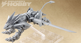We've also had the Zoids Aggressive Liger Zero announced! This one is in the near future, coming out in May. It'll come with alternative Strike Laser Claw parts (a brighter yellow, basically) and if you order through Kotobukiya Direct you'll receive the Leomaster flying stand. See the