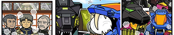 The pop-up tour has continued to pop out absolutely adorable artwork for Zoids Chaotic Century. Kagoshima has quite a huge cast of characters in their art, showing lots of Zoids and Characters hanging out. There's not a lot to say here, but they're just... very cute! The Gojulas is the Zoid-of-choice this time around.